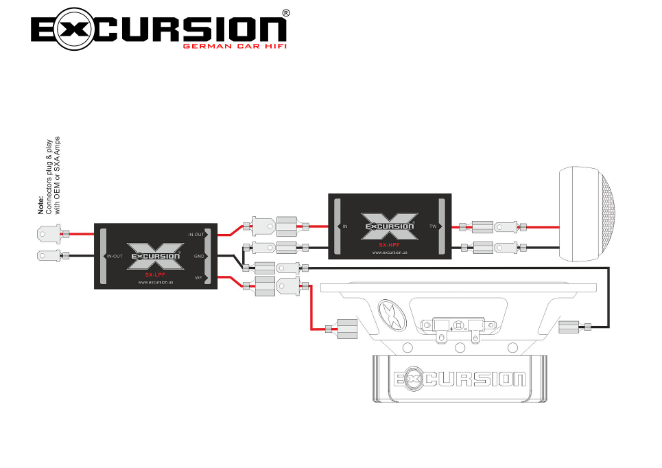- W celu obniżenia poziomu sygnału dla głośników wysokotonowych i dopasowania ich głośności do własnych preferencji można użyć łatwych w montażu tłumików rezystancyjnych Excursion XRL (sprzedawane oddzielnie) obniżających poziom sygnału w zakresie 2-10 dB.